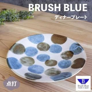美濃焼 落ち着きある手描き感と筆感 筆青 大皿