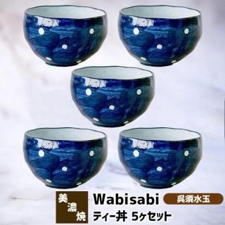 美濃焼 落ち着きある手描き感と筆感 筆青 どんぶりセット