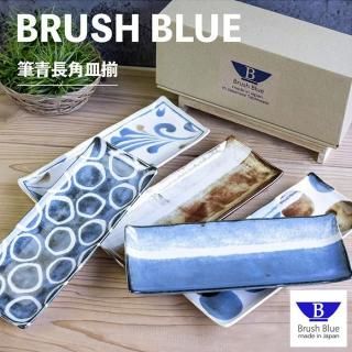 美濃焼 落ち着きある手描き感と筆感 筆青 長角皿5枚セット