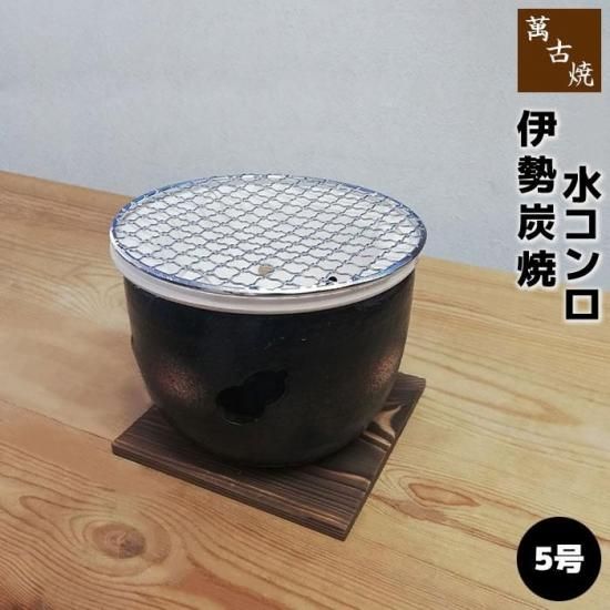 商品説明 萬古焼 伊勢炭焼 水コンロ 黒 5号