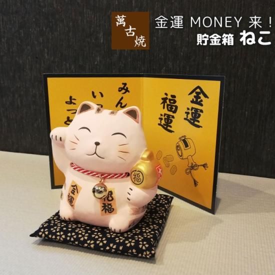 商品説明 萬古焼 金運 MONEY 来! ねこ 貯金箱