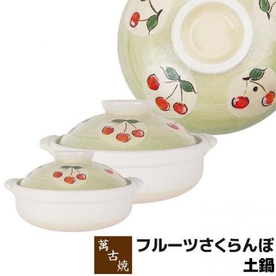 鍋の蓋にかわいいさくらんぼのイラストが入った土鍋萬古焼