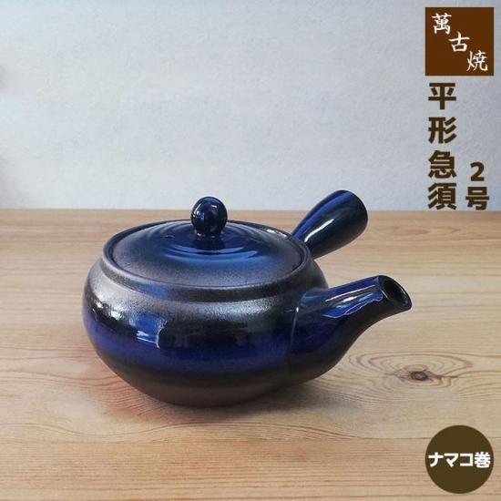 商品説明 萬古焼 平形急須 2号 底網 <ナマコ巻>