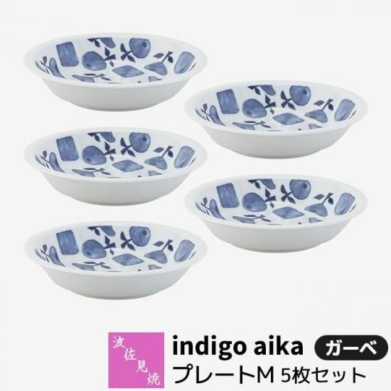 波佐見焼 indigo aika プレートM 5枚セット ガーベ