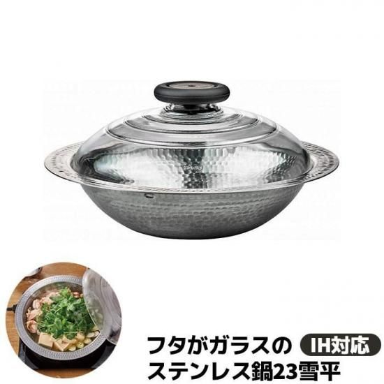 フタがガラスのIH対応 ステンレス鍋23雪平