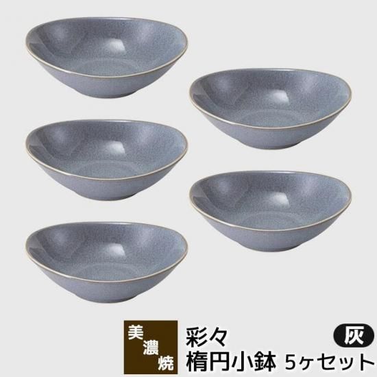 美濃焼 彩々 楕円小鉢 灰 5ヶセット